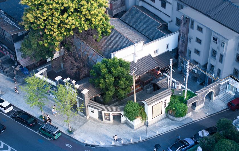 楊建覺:當(dāng)決策者征詢?nèi)绾翁幹眠@堆磚瓦時,我提議留住一段悠長而即將消逝的歷史場景感也許是不錯的選擇,復(fù)建新樓的報批報建也是麻煩,當(dāng)時心有萌動,念及讀初中時的記憶。我小時候住在大古道巷,時常去一位家住小古道巷的同學(xué)家玩。那是一棟老公館,院墻高高、木門厚實、石作講究,進(jìn)門就是一方天井,接著是精致堂屋,八仙桌、太師椅……妥妥的大宅門感覺。我的設(shè)計從盡量留住西側(cè)老青磚墻開始,直覺告訴自己正在做一個舞美設(shè)計,用寫意方式呈現(xiàn)記憶中的清末民初長沙大宅門。朋友評價說:這是后現(xiàn)代手法,重拾歷史碎片,兼具戲劇化、場景化、情感化特征,功能就是圍繞體驗、拍照、懷古來進(jìn)行。