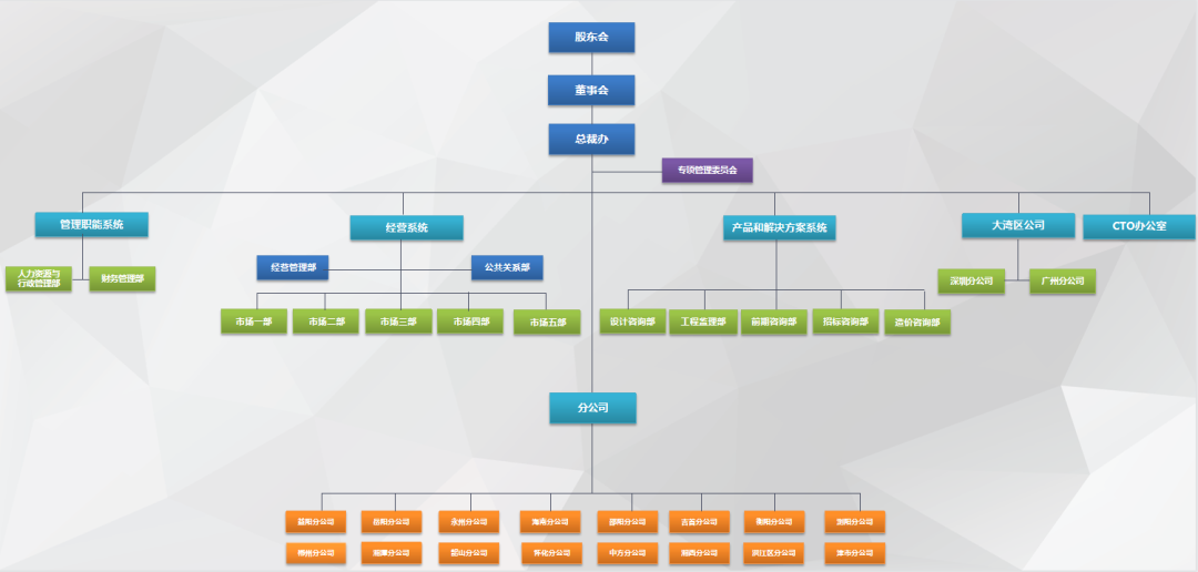 產(chǎn)品與解決方案系統(tǒng)下設(shè) 設(shè)計咨詢部、工程監(jiān)理部、前期咨詢部、造價咨詢部、招標(biāo)咨詢部。